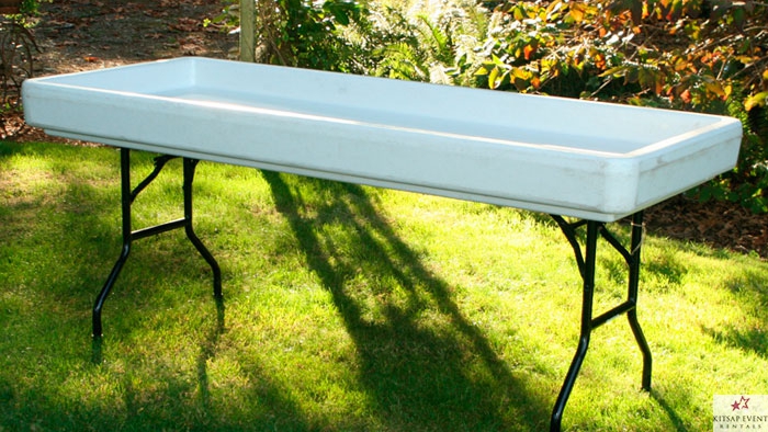 6' Chill and Fill Table, will hold up to 75 pounds of ice with drain plug in the middle.